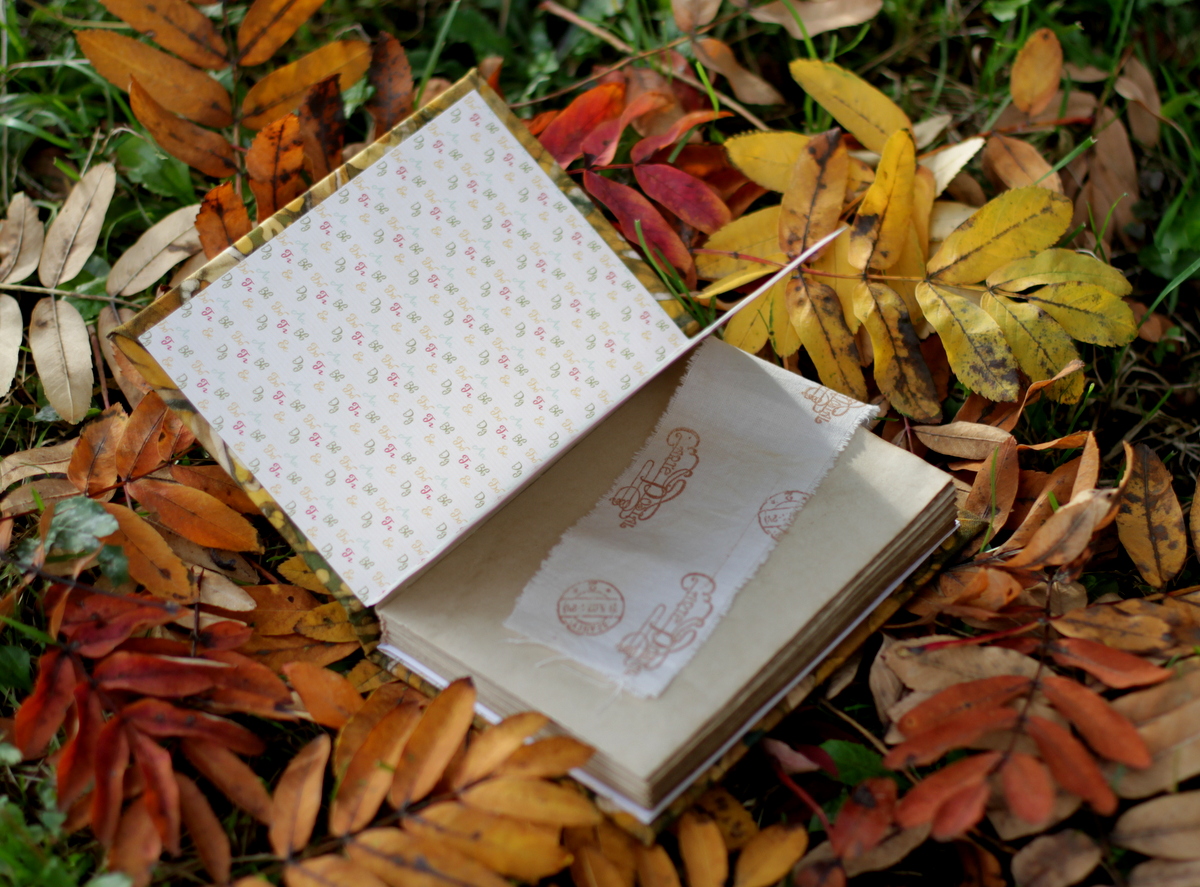 Осень баловала нас весь сентябрь великолепной погодой, яркими красками, теплом и солнцем. Мы и забыли, что календарная зима скоро :) Совсем расслабились в субботу, раздевшись до маек и босоножек, словно за окном июль. Но уже вечером в воскресенье продрогли, а некоторые из нас и под дождик попали :) Этот блокнот я сшила как раз в воскресенье на мк в московской "Скрапушке". Мне жаль, что я не взяла в тот день с собой фотоаппарат, потому что блокноты участниц получились превосходными! Ну хоть мой новоиспечённый дружок купался сегодня в утреннем солнце под рябиной в нашем дворе, и фотоаппарат был со мной :) Спешу показать! Эти фотографии будут греть меня в холода и хмурь! Пусть и вас согреют :)Страницы, тонированные кофе, отлично вписались в тёплую гамму рябинового ковра. Да, я ползала по траве :) да, спешащие на работу соседи улыбались, проходя мимо (пальцем у виска не вертели, но подозреваю, что просто стеснялись) и - да, я довольная как стадо слонов, что хоть что-нибудь